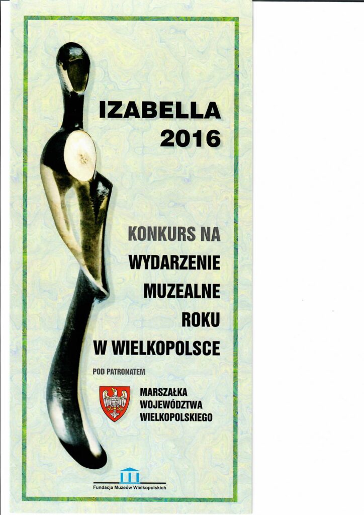 W dniu 22 maja br. w Muzeum - Zamek Górków odbyła się uroczystość wręczenia nagród w konkursie "IZABELLA 2016" na najlepsze wydarzenie muzealne roku w Wielkopolsce pod patronatem Marszałka Województwa Wielkopolskiego Pana Marka Woźniaka. Organizatorem całego przedsięwzięcia była Fundacja Muzeów Wielkopolskich, której prezesem jest Pan dr Jan Maćkowiak.