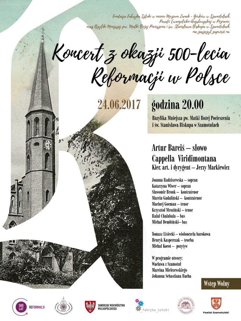serdecznie zapraszamy na koncert z okazji 500-lecia Reformacji, który odbędzie się w dniu 24 czerwca 2017 roku w Bazylice Mniejszej pod wezwaniem MB Pocieszenia i św. Stanisława Biskupa w Szamotułach o godzinie 20.00.
